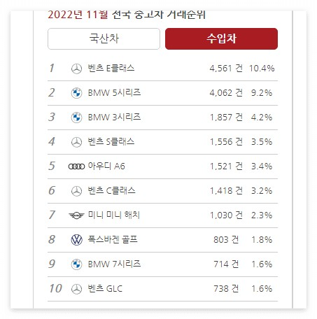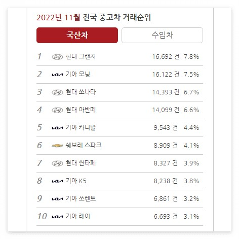 카이즈유는 월간 자동차 거래 순위를 국산차와 수입차로 나눕니다. 지금 중고차 시장이 어떤 모습인지 한눈에 알 수 있습니다.