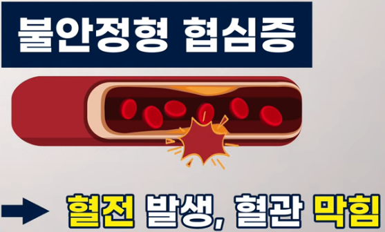 불안정형 협심증은 급성관상동맥 증후군에 들어가는 위험한 협심증입니다. 협심증이 있던 환자가 갑작스럽게 기름 때가 터지면서 혈전 또는 그 혈전때문에 거의 막히기 일보 직전인 아주 위험한 상황으로 즉시 응급실에 가셔야 합니다.